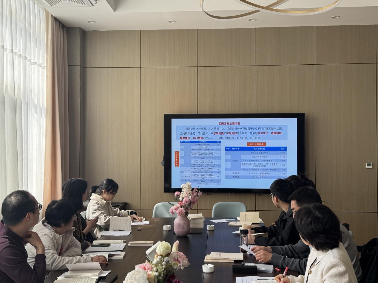 随后,廖军传达布置学院党委关于深入贯彻中央八项规定精神学习教育的工作安排。他指出,中央党的建设工作领导小组召开会议后,各级党组织推进深入贯彻中央八项规定精神学习教育,学院党委根据上级要求,结合学院实际,制定了详细的实施方案。方案把握目标要求,坚持以习近平新时代中国特色社会主义思想为指导,从学院党委和师生支部两个层面,聚焦主题、简约务实,通过学习研讨、查摆问题、集中整治、开门教育四个环节,一体推进学查改,融入日常、抓在经常。廖军还传达了学校第2次党委书记工作会议精神,强调要紧跟学校党委工作部署,将会议精神贯彻落实到学院党建工作的各个环节,进一步提升学院党建工作水平。