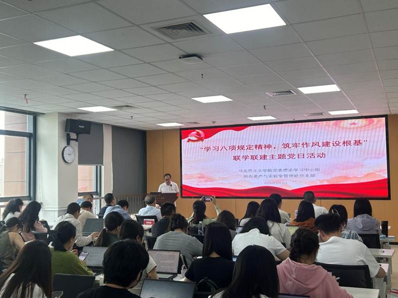 5 月 9 日,马克思主义学院党委理论学习中心组 2025 年第 3 次集体学习暨 “学习中央八项规定精神,筑牢作风建设根基” 联学联建主题党日活动举行。活动特邀中国社会科学院马克思主义研究院原党委书记邓纯东作“学习党的作风建设论述,加强党风建设”专题导学,学院党委理论学习中心组成员、学校国有资产与实验室管理处党支部成员、学院师生党员代表共同参与。马克思主义学院党委书记廖军主持会议。