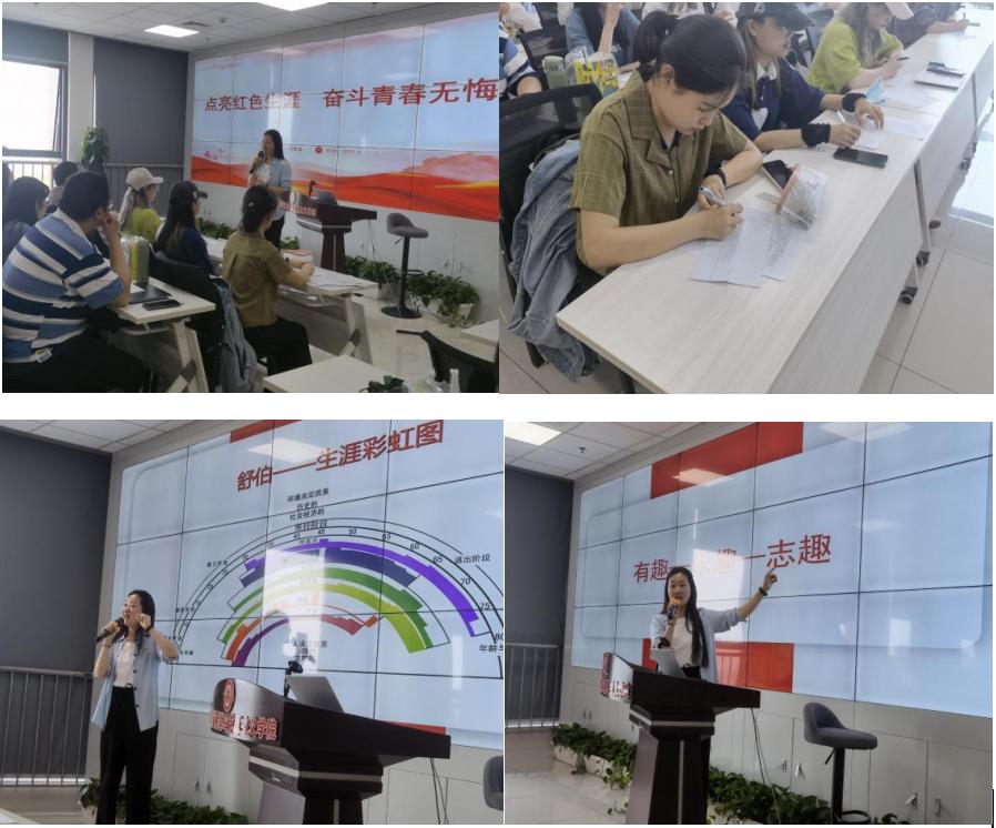 杨雪莲老师以“点亮红色生涯 奋斗青春无悔”为主题同全体积极分子们进行交流互动,通过生涯彩虹图感受生命的长度和广度,并以钟南山、李兰娟、陈祥榕等感人事迹,希望同学们将爱国情怀融于人生追求中,把红色基因融入生命,让中国红成为我们的生涯底色。