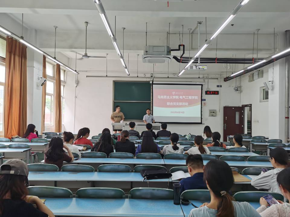 为深入贯彻落实党的十九届六中全会精神,积极引导学生党员自觉做习近平新时代中国特色社会主义思想的坚定信仰者和忠实实践者,进一步加强学生党支部之间交流互动,增进相互了解,密切相互联系,2022年6月16日下午,马克思主义学院2020级硕士研究生党支部联合电气工程学院电气硕士21-12班党支部在X2330共同组织开展了党支部书记讲党课活动。会议由党支部书记罗田、严一舟同志主持,两个支部全体党员参加。