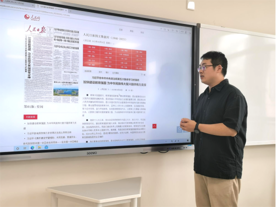 2023年6月20日上午10点,2021级硕士班党支部于X30305教室开展学习习近平总书记在中央政治局第五次集体学习时的讲话精神的主题党课。本次主题党课由党支部书记李祥瑞同志主讲,全体党员参加本次学习。