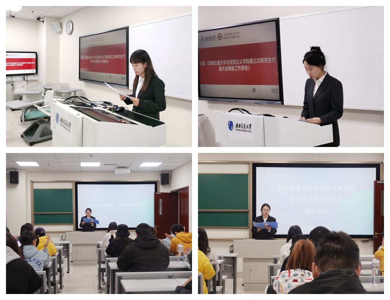 在11月24日召开的预备会议中,各位代表仔细审议并表决通过了大会《西南交通大学马克思主义学院第三次学生代表大会筹备工作报告》《西南交通大学马克思主义学院第三次学生代表大会代表资格审查报告》《西南交通大学马克思主义学院学生会委员会委员选举办法》以及《西南交通大学马克思主义学院第三次研究生代表大会筹备工作报告》《西南交通大学马克思主义学院第三次研究生代表大会主席团,秘书长、副秘书长建议名单》《西南交通大学马克思主义学院第三次研究生代表大会代表资格审查报告(草案)》《西南交通大学马克思主义学院第三届研究生委员会委员选举办法(草案)》和《西南交通大学马克思主义学院第三届研究生会主席团成员选举办法(草案)》等重要议案。