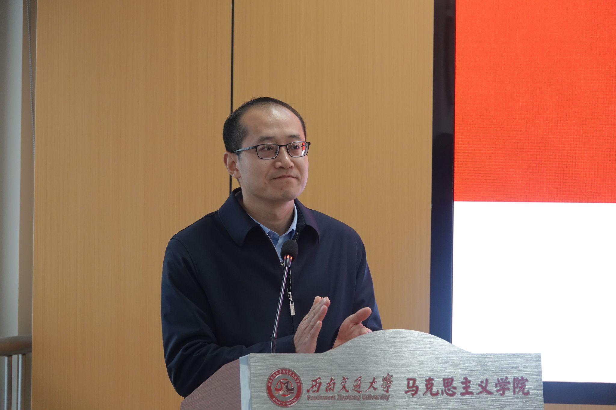 马克思主义学院党委书记廖军代表学院党委对大会的召开表示热烈祝贺,并向各位参会代表致以亲切问候和美好祝愿。廖军书记首先回顾了西南交通大学马克思主义学院的深厚历史和过去一年我院学生会、研究生会开展的活动,强调我院学子要秉持初心,踔厉奋斗。同时他指出,同学们要将奋斗作为青春最靓丽的底色,以实际行动让自身成长获益。对此,他对学生干部今后的工作提出了三点要求:一是要加强理论学习,坚定理想信念;二是要提升综合素质,发挥榜样作用,秉持博学明辨的学习态度,处理好学习与工作、老师与同学的关系;三是要树立服务意识,密切联系同学,围绕学院中心与特色开展工作,打造好富有理想,清新阳光的学生队伍。