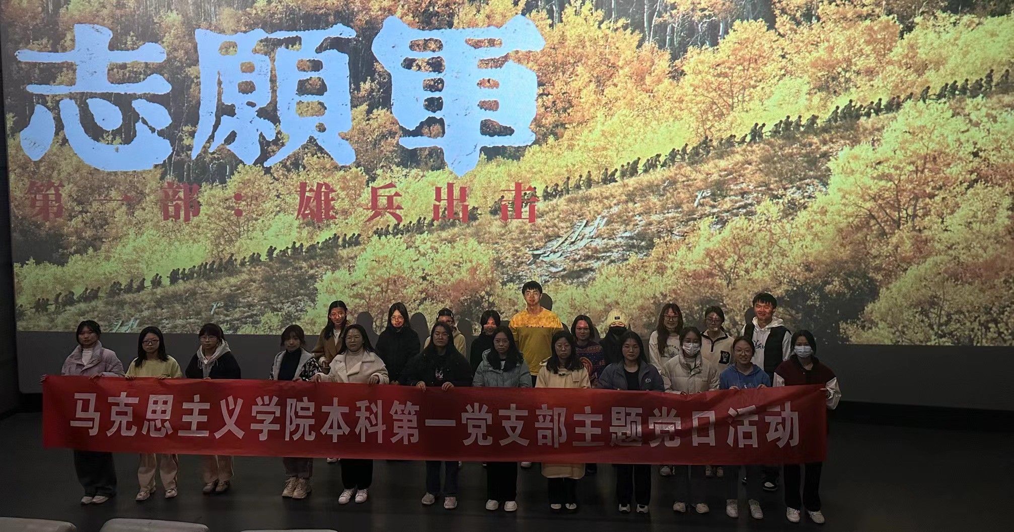 为深入学习贯彻习近平新时代中国特色社会主义思想,教育引导支部党员同志铭记抗美援朝伟大胜利的不朽功勋和进步意义,重温抗美援朝的斗争历史,缅怀为国捐躯的革命先烈,12月3日,马克思主义学院本科第一党支部组织全体党员观看电影《志愿军:雄兵出击》。