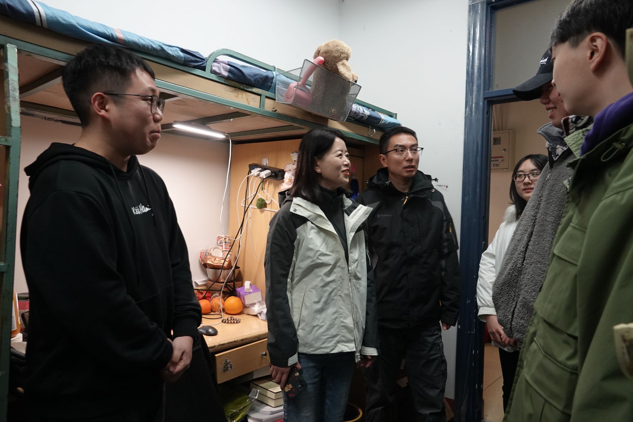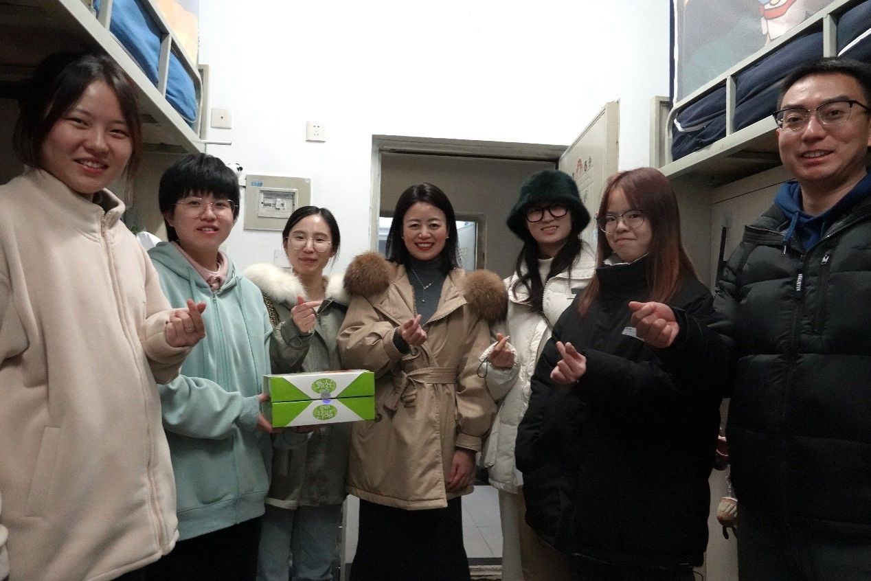 在2024年元旦佳节即将来临之际,为深入了解学生动态,提升学院同学的凝聚力和归属感,12月29日和12月30日,学院党委副书记邓秀芸、研究生辅导员赵晨、本科生辅导员杜晓林和高楠共同走访学生宿舍,看望慰问学生。