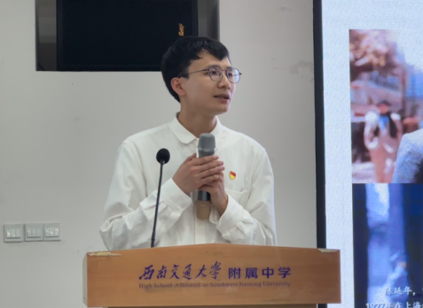 四川省委宣讲团新时代文明实践青年宣讲分团成员、西南交通大学理响红途“星火”博士生宣讲团团长、马克思主义学院2021级博士生冷书恒受邀于5月10日赴西南交通大学附属中学开展“弘扬五四精神,谱写青春华章”主题团课。西南交大附中团委书记解云、马克思主义学院团委书记赵晨和西南交大附中的团员和入团积极分子参加。