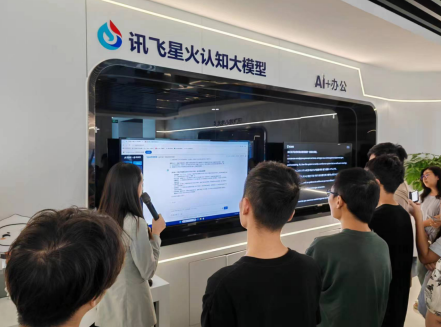 科大讯飞(四川公司)工作人员对交大师生一行表达了热烈欢迎,介绍了公司的发展历程和行业应用。师生们首先参观人工智能展厅,在工作人员的讲解和演示下直观了解科大讯飞在人工智能模型、语音识别、语言转写、问答对话、文学创作、会议记录、AI+医疗、AI+政法、AI+教育等方面的核心技术进展情况。师生们还在展厅体验了翻译机、智能办公、智慧教育等设备,深刻感受到人工智能为学习生活带来的改变。