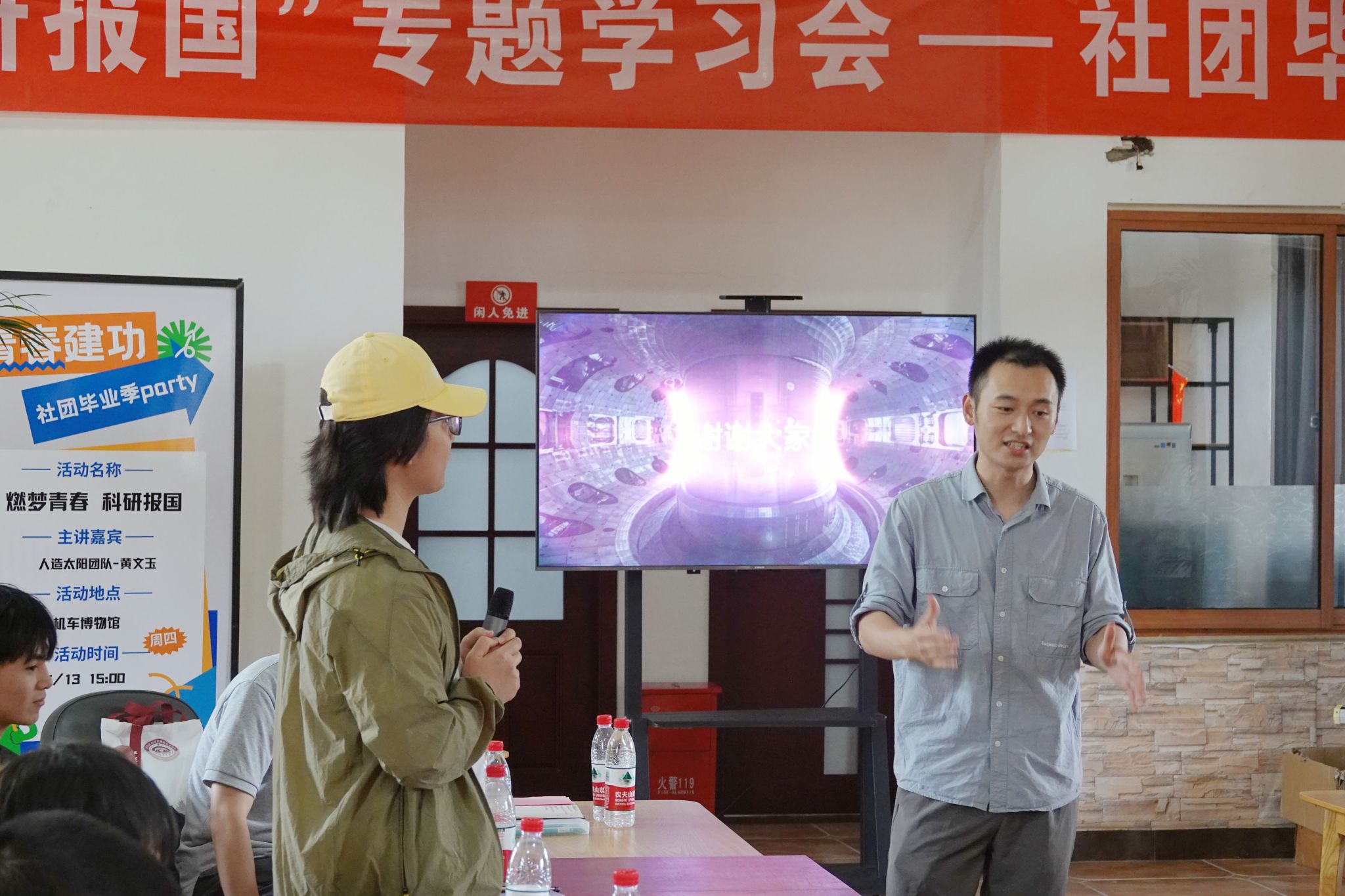 为弘扬新时代科学家精神,提升青年学子对核工业的兴趣,为即将毕业的交大学子种下科研报国的种子,马克思主义学院于6月13日下午在机车博物园内举办社团毕业季Party之“燃梦青春 科研报国”专题讲座。本次讲座邀请到核工业西南物理研究院助理研究员、“人造太阳”博士科普团科普讲解员黄文玉博士作为主讲人。讲座由马克思主义学院团委书记赵晨主持。