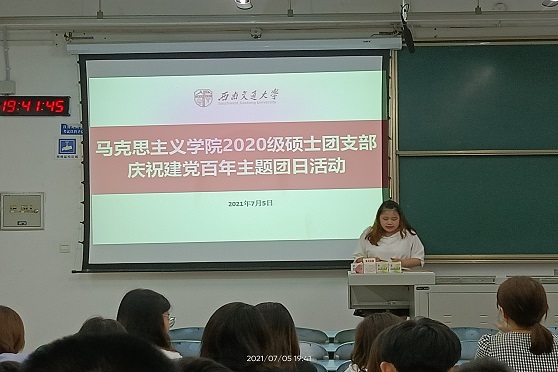 为庆祝中国共产党成立100周年,西南交通大学马克思主义学院2020级硕士团支部于7月5日晚上8点在2335召开主题团日活动,团支部成员积极参加。