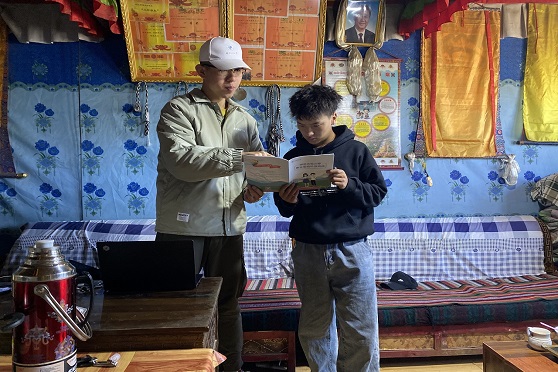 7月11日,在次仁同学的陪同下,走访团队与村中处于不同学习阶段的学生进行了国家资助政策宣讲,受到当地青年学子热烈欢迎。正处于高中学习阶段的旺久同学表示,感谢党和国家对于少数民族学生的关爱,自己处于高中学习的关键时期,一定要努力学习功课,不辜负党和国家的期望。在宣讲工作结束后,团队圆满地完成了本次暑期资助走访活动。
