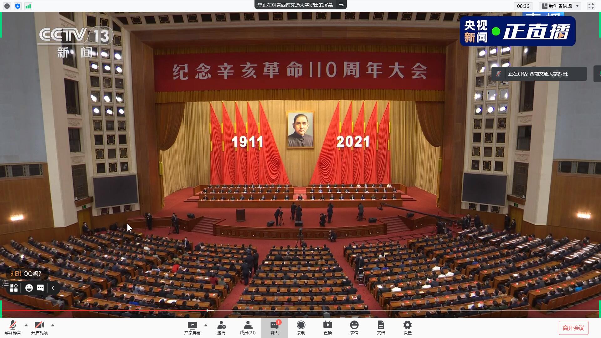 今年是辛亥革命110周年。2021年10月9日上午,纪念辛亥革命110周年大会在人民大会堂隆重举行,习近平总书记在会上发表重要讲话。下午,马克思主义学院2020级硕士生党支部组织支部全体党员深入学习了习近平总书记在纪念大会上的重要讲话。会议由党支部书记罗田同志主持。