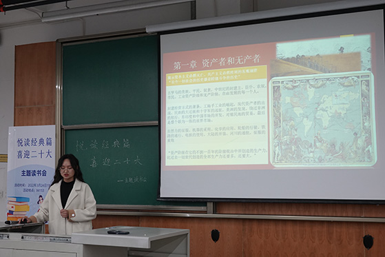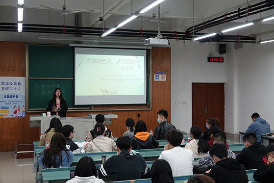 为鼓励同学们“好读书,读好书”,同时热烈迎接二十大的胜利召开,马克思主义学院于3月24日19:30在X4153举办“悦读经典篇,喜迎二十大”主题读书会,会议由2020级同学陈帅锟主持,马院全体本科生共同参与。
