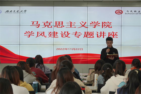 11月22日14:00,马克思主义学院在X31325报告厅开展了以“把你的时间用到‘刀刃’上——有效的时间管理”为主题的学风建设专题讲座。本次讲座由西南交通大学图书馆专职组织员黄雪娇老师主讲,马克思主义学院辅导员李浩及2021级全体本科生参加。讲座由李浩老师主持。
