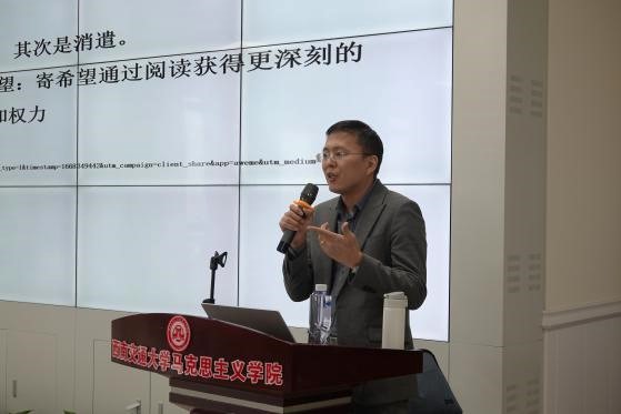 此外,米传振老师文学对智识的贡献进行了分析。同时,米老师也提醒我们要注重社会科学书籍和论文的阅读。最后,米传振老师向我们提出问题:阅读书籍应如何权衡?米传振老师提出了关于专业书籍和非专业书籍的阅读建议。