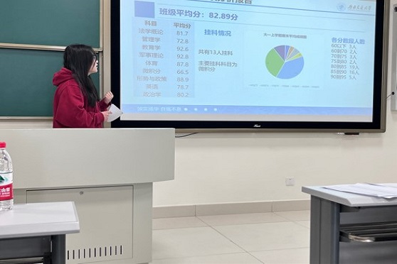 团支书才仁卓玛首先对2022-2023学年第一学期学习成绩进行了分析汇报,让同学们对自己和班级整体情况都有了一个比较清晰的了解。