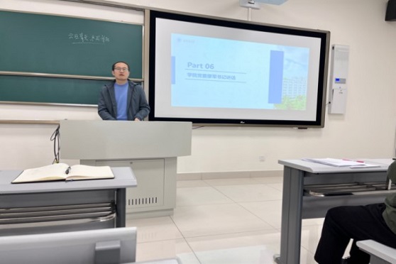 最后,学院党委廖军书记进行了指导讲话。廖书记首先代表学院对全体同学进行了慰问,长期以来,学院高度重视学生成长发展,为学生成长营造良好环境。廖书记结合自己的升学和成长经历,激励全体同学积极发扬艰苦奋斗精神,努力学习充实自我,并注重沟通等综合素质培养。廖书记寄语大家,要响应时代呼唤,怀抱梦想,立志做有理想、敢担当、能吃苦、肯奋斗的新时代好青年。最后廖书记勉励大家坚定信心,注重学习方法,相信未来前途一片光明!