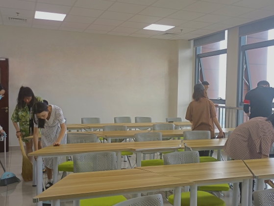 同学们热情响应、积极参与,对学院自习室和储物间等公共区域进行了细致打扫。活动过程中,同学们分工明确、相互配合。有的同学负责扫地和清理地面垃圾,有的同学负责拖地,还有一部分同学负责擦窗户、擦桌子等,用实际行动践行了“崇尚劳动,热爱劳动”的劳动精神。