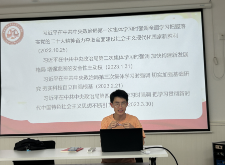 为深入学习贯彻习近平新时代中国特色社会主义思想和党的二十大精神,教育引导支部党员深刻领悟“两个确立”的决定性意义,不断增强“四个意识”、坚定“四个自信”、做到“两个维护”,2023年6月13日19:30马克思主义学院硕士第一党支部在九里校区01417开展了“习近平总书记与大学生在一起”主题党日活动,支部全体党员和入党积极分子参加了本次活动。