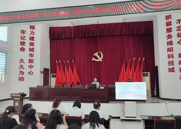 四川省委宣讲团新时代文明实践青年宣讲分团成员、四川省高校学习宣传党的二十大精神师生巡讲团成员、西南交通大学博士宣讲团团长冷书恒以“正确理解四川现代化建设的基本内涵”为主题,于7月18日为乐山市市中区人民政府办公室、机关党委工作人员开展宣讲;于7月20日为绵阳市安州区雎水镇、秀水镇乡村干部开展宣讲。他从经济高质量发展、融入新发展格局、多民族共同富裕、文化自信自强、人与自然和谐共生等多个方面讲述了四川现代化建设历程。