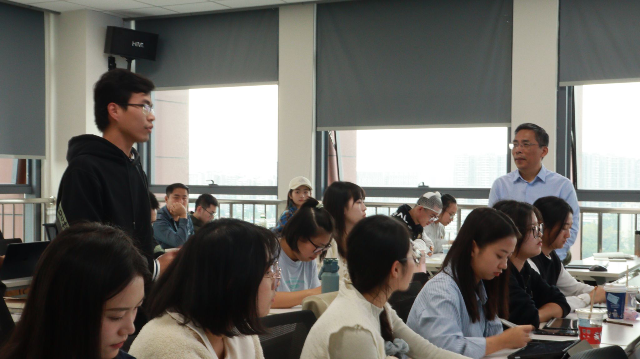 讲座结束后,在场的学生们热情高涨,积极踊跃地向王教授请教。同学们就大小论文关联性、论文架构以及如何进行书籍文献问题等问题,向王永贵教授提出疑惑。王永贵教授非常亲和地回答问题,真诚坦率地分享自己的看法,并表示同学们很善于发现问题,这种敢于求知的勇气需要保持!