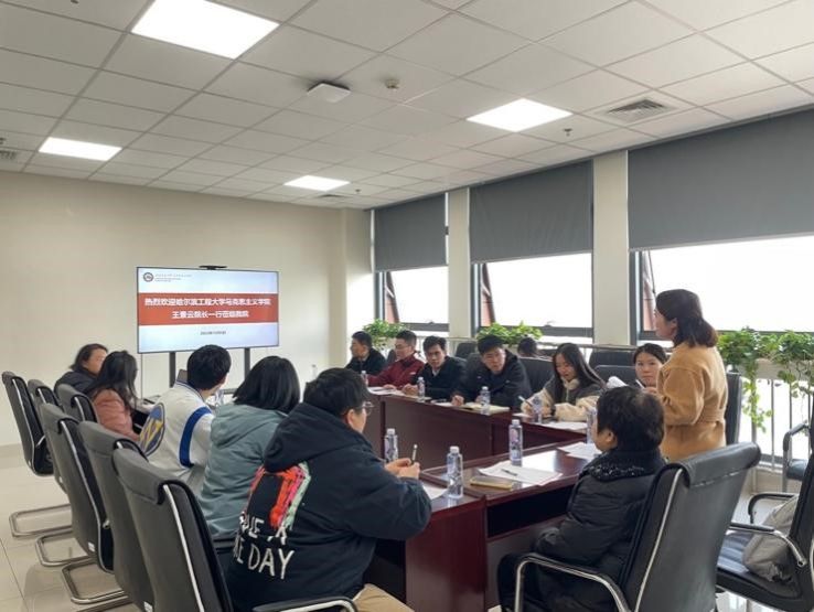 为深入学习贯彻习近平新时代中国特色社会主义思想和党的二十大精神,推进习近平文化思想融入大中小学思政课,2023年12月6日15:30哈尔滨工程大学马克思主义学院院长王景云教授、院长助理金璐璐老师、副教授张金秋老师以及博士研究生杨晨光与西南交通大学马克思主义学院本、硕、博学子之间进行了学习交流座谈会。在座谈会开始前,我院副教授刘莹老师向同学们隆重介绍了哈尔滨工程大学、哈尔滨工程大学马克思主义学院以及王景云院长。