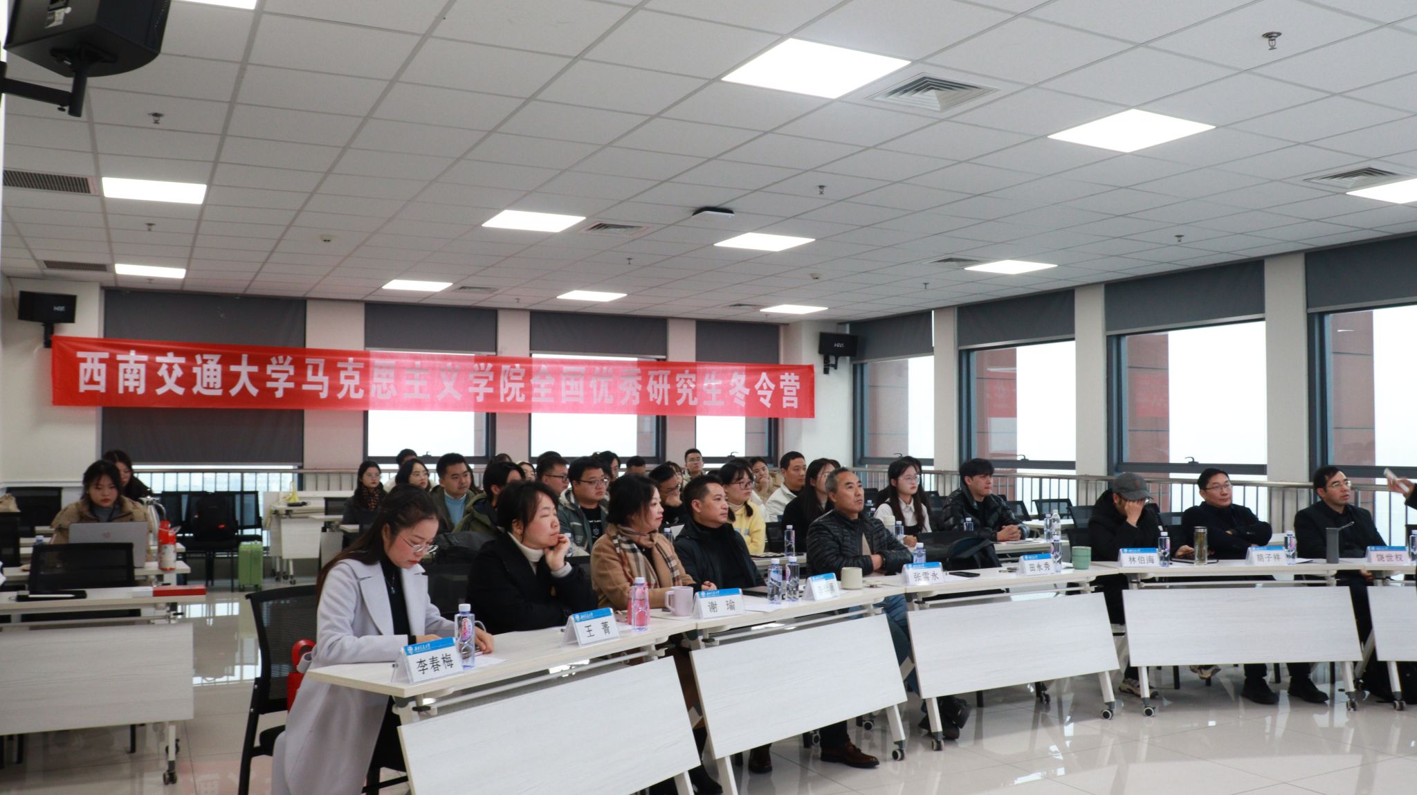 2024年1月5日、6日,西南交通大学马克思主义学院顺利举办首届全国优秀硕士研究生学术冬令营,目的是为了对2024年博士研究生招生政策进行宣讲,增加广大学子对西南交通大学马克思主义学院的了解,同时,增进全国马克思主义理论相关专业优秀学子之间的交流。本次冬令营包括校史陈述、学院基本情况介绍、博士生导师自我介绍、营员汇报展示、学院参观、师生交流等环节。经过前期的严格筛选,共有30位来自全国各地的优秀硕士研究生参加了本次冬令营。