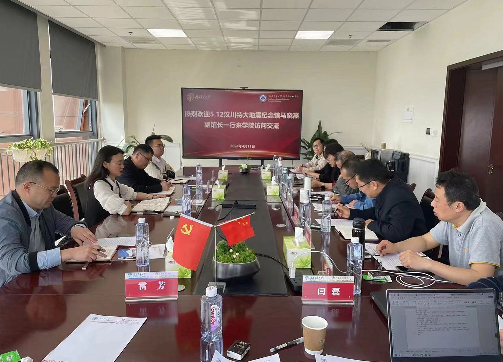 4月11日上午,5.12汶川特大地震纪念馆马晓燕副馆长一行4人来学院访问,双方就合作建设省级革命文物协同研究中心座谈交流。国家社科基金重大项目首席专家何云庵教授、学院党委书记廖军、执行院长田永秀、副院长胡子祥、李学勇,以及中国共产党人精神谱系研究团队成员参加座谈。学院党委书记廖军主持座谈。