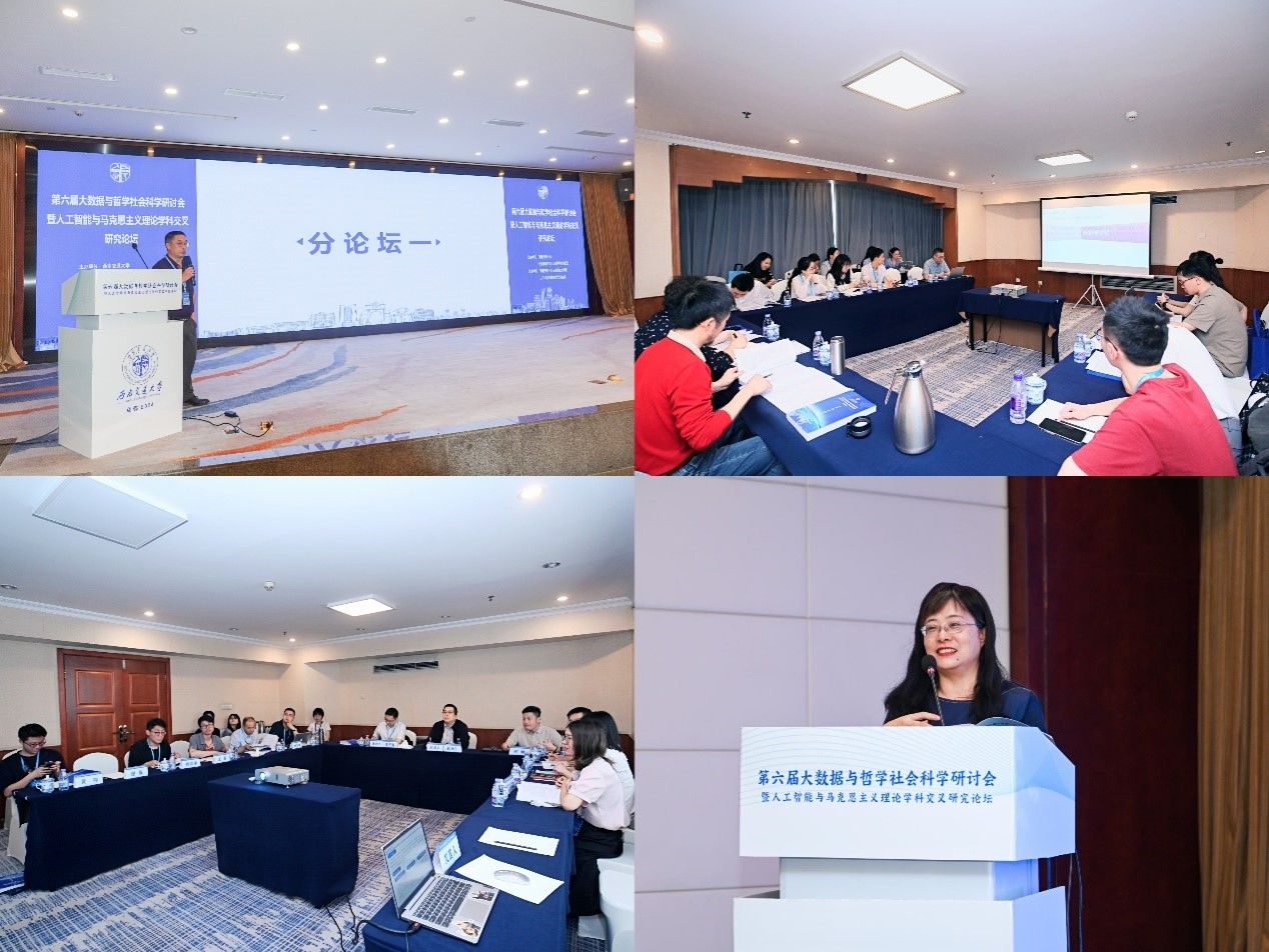 主旨报告环节,北京师范大学地理数据与应用分析中心高剑波教授、电子科技大学马克思主义学院院长吴满意教授、华南师范大学哲学与社会发展学院闫坤如教授、中国社会科学院马克思主义研究院张建云研究员等12位专家奉献了精彩的学术报告。主题涉及“从大数据和复杂性科学视角看世界经济发展和国际合作”“大数据思政教育的信息爆裂与意义再生产”“可解释性人工智能及其伦理反思”“唯物史观视域下新质生产力革命的本质”等。重庆大学陈科教授、华北电力大学王建红教授、江西师范大学王水兴教授、西南交通大学王菁教授、西南交通大学景星维副教授、中国知网张喻、重庆邮电大学谢俊教授、广东财经大学黄瑜教授也向大会作了主旨报告。主旨报告立足前沿,呈现出极高的现实意义和学术水平。