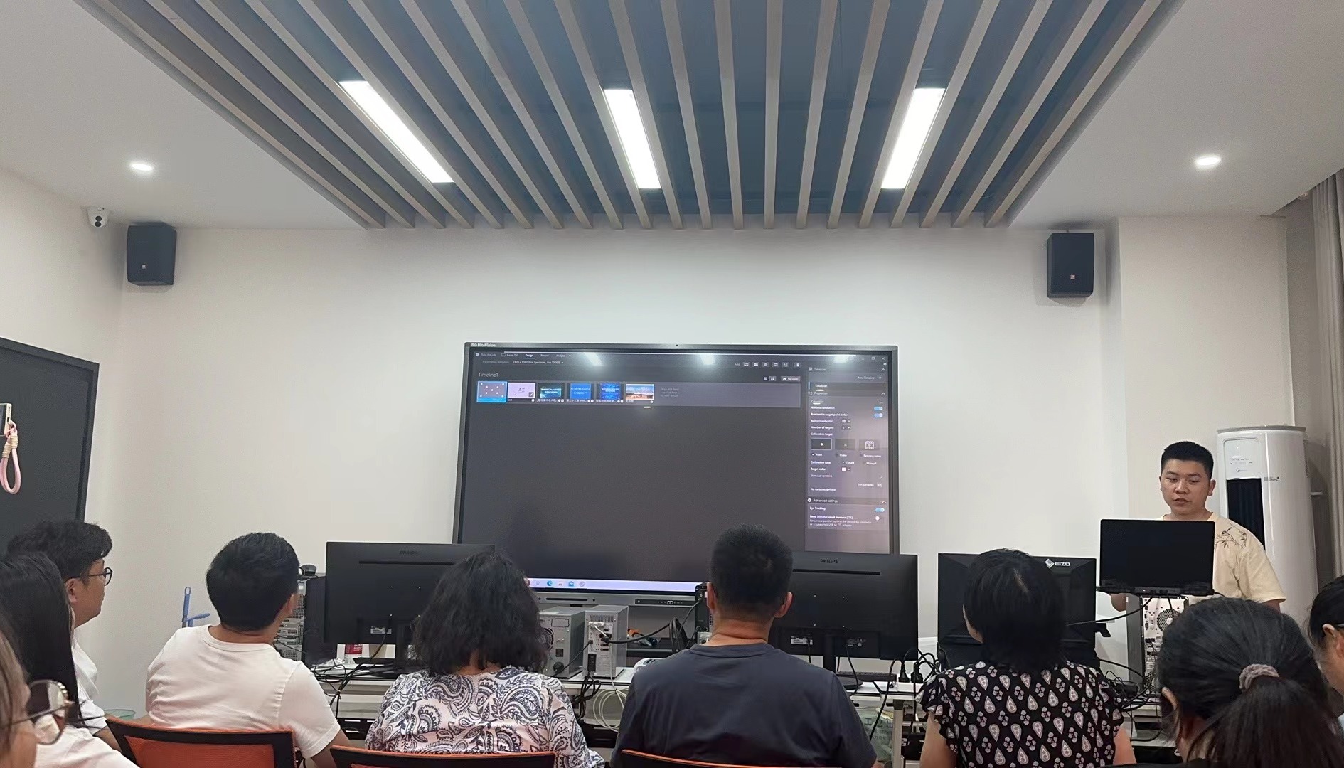 在下午的工作坊中,我院师生学习了Tobii眼动仪的使用,包括理论知识、实验训练与眼动轨迹数据分析三个环节。此仪器具有高效率、高精度、易操作的特点,能够自行处理分析受试人员视线焦点及注意力聚焦热力图,对思想政治理论课的实效性研究等有重要意义。