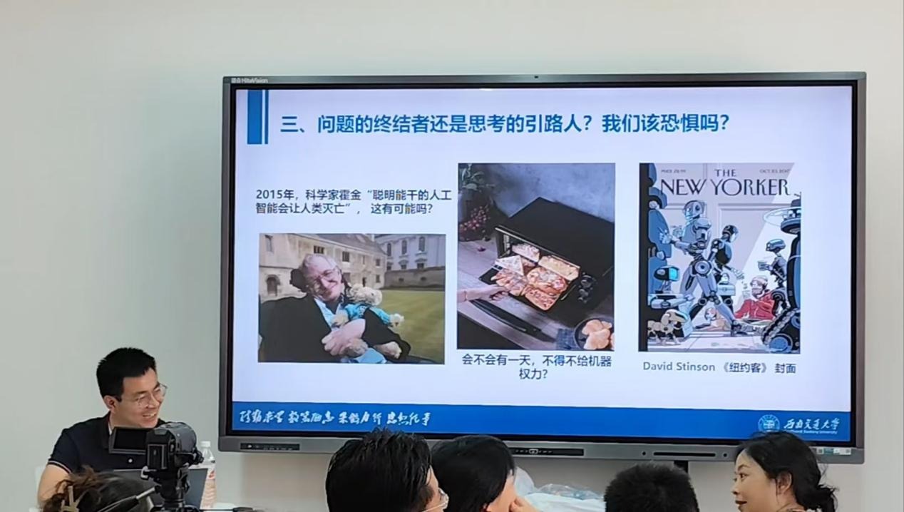 在工作坊后半部分,由博士不仅分享了大模型技术研究领域的最新成果,还结合实例讨论了大模型的技术挑战与未来可能的突破方向,并表示人工智能在目前阶段虽然存在多种问题,但仍具有极高研究价值。在本期工作坊中,马克思主义学院的师生们积极参与互动,就大模型技术与社会发展的关系进行了深入探讨,尤其是在如何运用人工智能技术推动社会治理水平提高以及意识形态风险控制等问题上,碰撞出诸多思维火花。