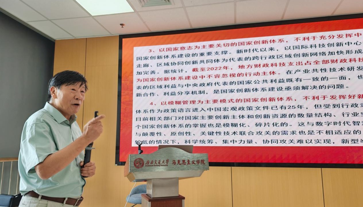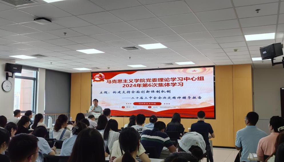 2024年9月12日,马克思主义学院邀请西南交通大学党的组织建设与人才发展研究中心主任、中国人事科学研究院原院长吴江教授为全院师生领学党的二十届三中全会精神。会议由西南交通大学马克思主义学院党委书记廖军主持。