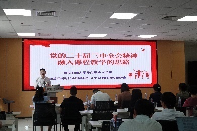 潘晓瞳、孟浩、李渊博、刘锋、刘玉标、杨桓、张露露等七位教师分别代表各系室,就党的二十届三中全会精神融入思政课教学进行说课展示。潘晓瞳从学情分析、预期目标、融入内容和融入方法等四个方面阐述了 “以人民为中心”的发展思想融入“毛概”教学的必要性和可能性;孟浩立足于唯物史观,提出了把党的二十届三中全会精神融入“中国近现代史纲要”课的几点思考;李渊博强调了“新质生产力”融入马克思主义基本原理课应该讲清本体论、认识论和方法论三个问题;刘锋以“构建支持全面创新体制机制”为主题,深入剖析了中共中央关于进一步全面深化改革、推进中国式现代化的决定如何融入“思想道德与法治”课;刘玉标把握进一步全面深化改革的重大意义和总体要求,阐释了党的二十届三中全会精神融入“习概”课的几点思路;杨桓解读了《决定》中关于处理好政府与市场关系的重要论述,并分析如何将其融入“当代中国政府与政治”课程;张露露则代表研究生思想政治理论课教研部,着重分析了中国式现代化进程中的城乡融合发展。