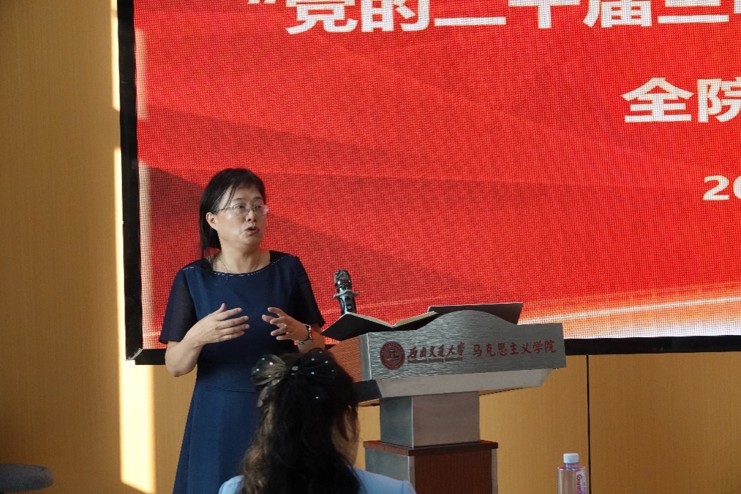 马克思主义学院王菁副院长结合学习贯彻党的二十届三中全会精神深化教学研究,作了国社科思政课专项申报动员。勉励全院教师共同努力,把教学和科研深度融合,把握科研发展规律,有计划地开展科研,在新时代中展现新气象,体现新作为。