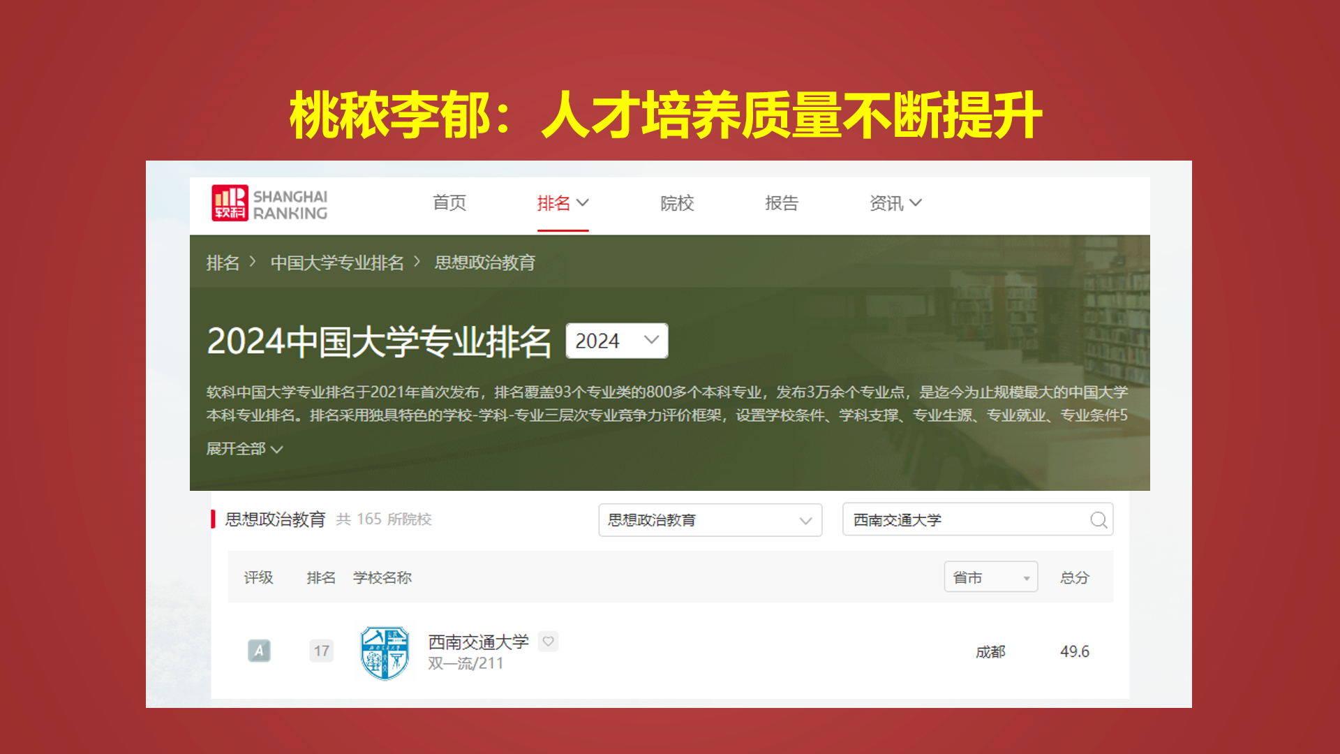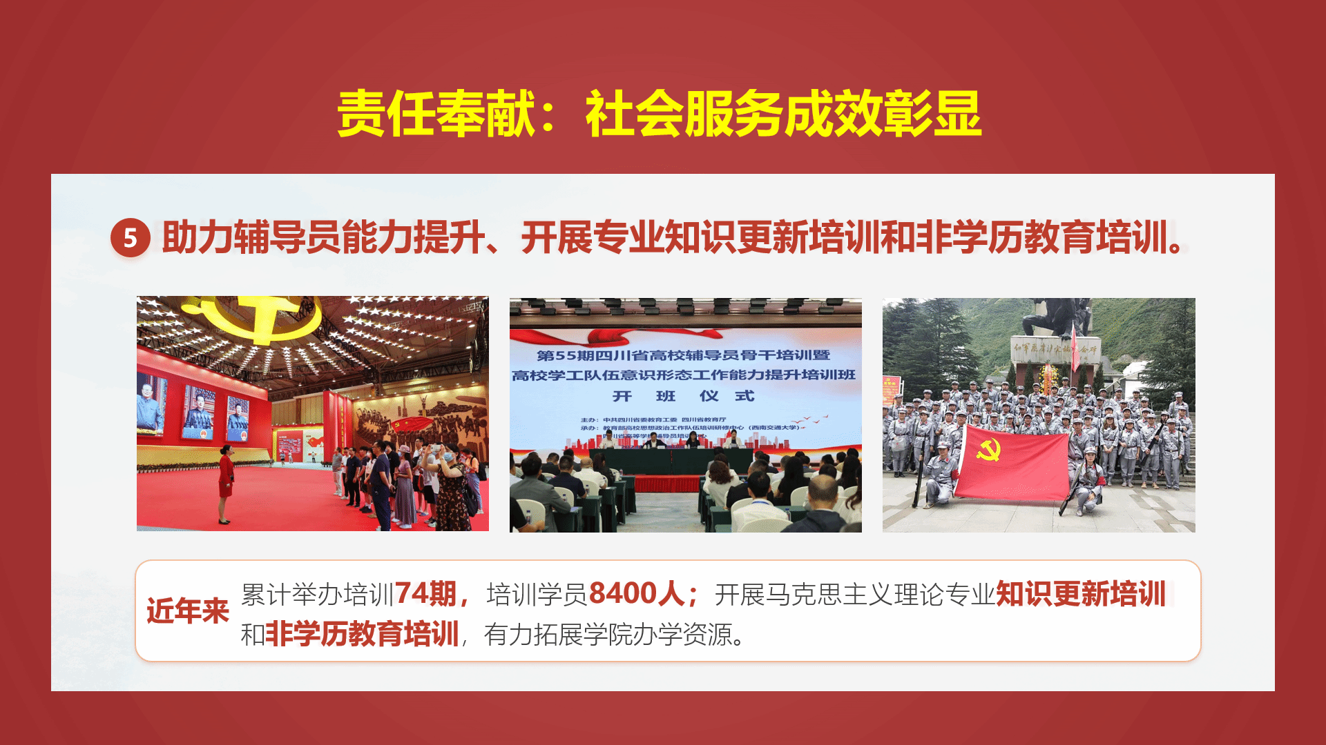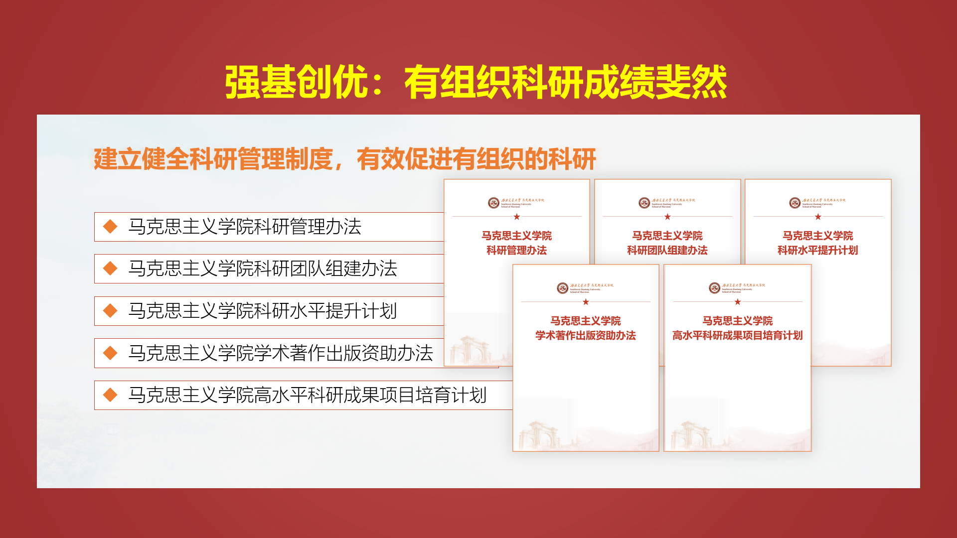 经学校党委批准,中国共产党西南交通大学马克思主义学院第二次党员大会即将隆重召开。今天让我们一起来回顾第一次党员大会以来学院在人才培养、科学研究、社会服务方面取得丰硕成果。