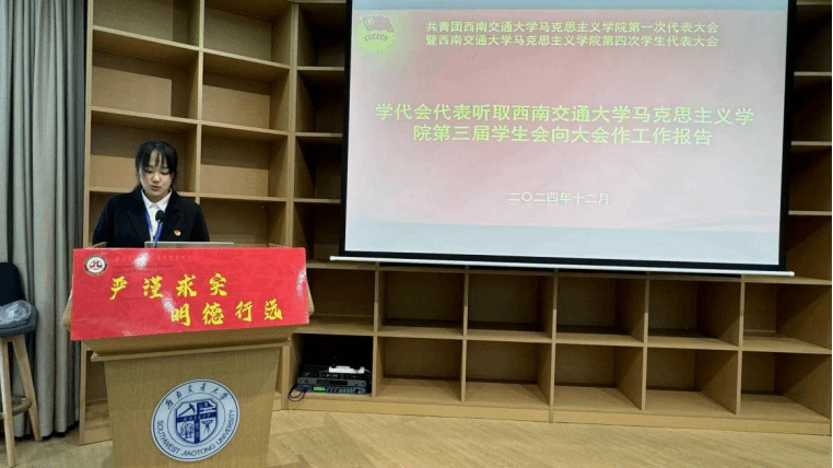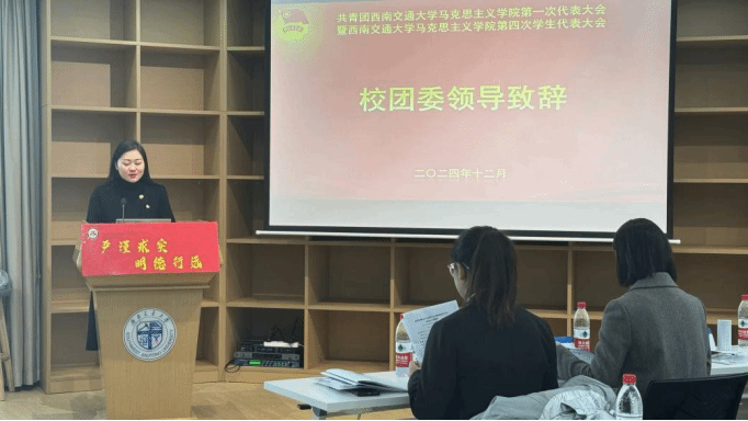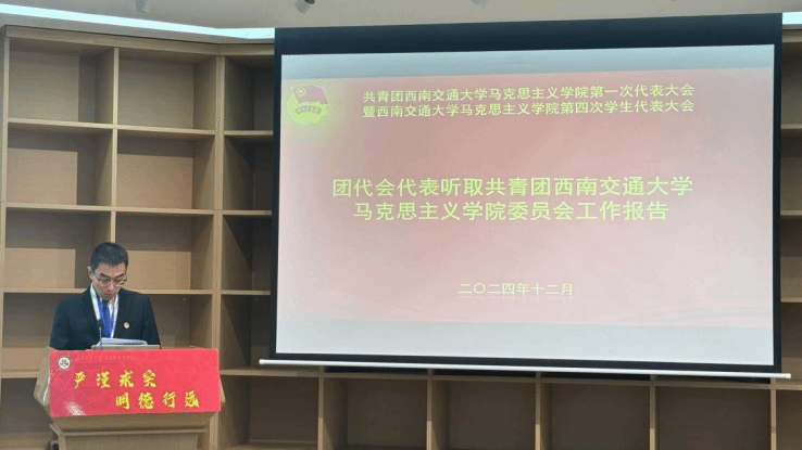 为深入学习宣传贯彻党的二十大精神,贯彻落实团的十九大精神,进一步探索马克思主义学院共青团工作新机制、新方法、新路径,12月14日—12月15日,中国共产主义青年团西南交通大学马克思主义学院第一次代表大会暨西南交通大学马克思主义学院第四次学生代表大会于犀浦校区顺利召开。西南交通大学团委副书记李娜、马克思主义学院党委副书记邓秀芸、团委书记赵晨、团委副书记杜晓林,西南交通大学学生会主席团成员杨悦、辅导员敬宇、辅导员赵子涵以及马克思主义学院团代会代表、学代会代表参与大会。