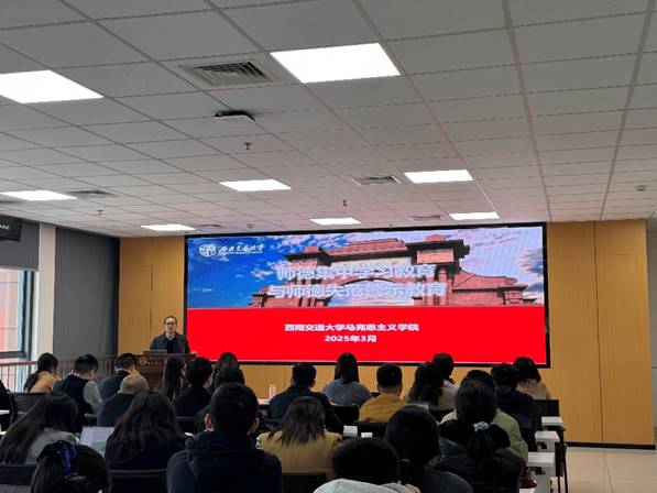 为强化高校教师师德师风,严守教师行为底线,3月13日,马克思主义学院在X31325开展了师德集中学习教育与师德师范警示教育主题活动。此次主题教育由学院党委书记廖军主讲,学院全体教职工参与。此次活动围绕《普通高校思政课教师队伍建设规划(2025 - 2027)》展开,重点强调对师德师风违规“零容忍”和强化监督预警机制。