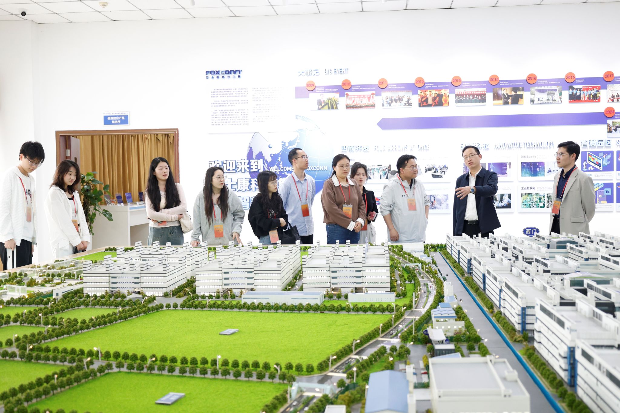 为深入了解企业党建工作的理论与实务,加强对外交流与合作,近日,我院“四川省高校‘双带头人’党支部书记工作室”杨桓同志工作室组织师生党员深入富士康(成都)科技工业园开展了党建交流考察活动。我院方纲老师、杨桓老师、张露露老师及本硕博学生党员代表参加了活动。活动由富士康(成都)科技工业园党委副书记谭光进主持,富士康(成都)科技工业园党委组织部部长张腊梅参加活动。双方围绕党建引领、人才培养、组织建设等方面展开了深入探讨。