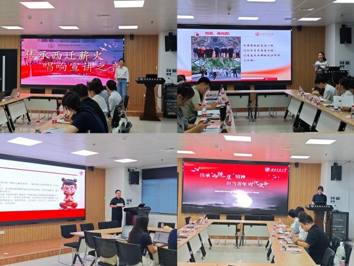 为深化新时代高校党建与学科建设融合发展,推动学生工作守正创新,学院师生代表5月23日赴西安,与西北大学、西安交通大学马克思主义学院开展学生党建与理论宣讲工作专项调研。此次调研之行以“党建引领聚合力,宣讲赋能启新程”为主题,通过实地参访、主题研讨、联合宣讲三维联动,探索学生党建和理论宣讲工作的新思路,着力构建校际协同、联学共建同频共振新格局。