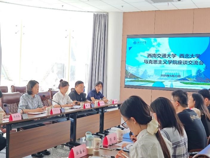 参观结束后,开展座谈交流与工作研讨。参加此次会议的人员有西北大学马克思主义学院团委书记刘娟、党务秘书刘通,西南交通大学马克思主义学院党委副书记邓秀芸,团委副书记、辅导员敬宇,两院研究生党支部和理论宣讲社团负责人及学生代表。