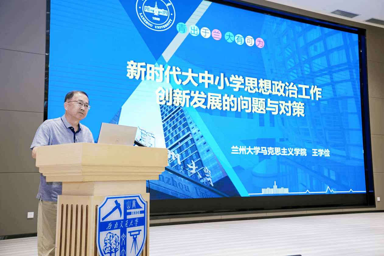 西南交通大学马克思主义学院院长田永秀教授主持专家主旨报告环节,教育部高等学校马克思主义理论本科专业教学指导委员会委员、兰州大学思想政治教育工作研究院院长王学俭教授,安徽师范大学马克思主义学院二级教授王习胜教授作报告。王学俭教授在报告中围绕“大中小学思想政治工作创新发展的问题与对策”,从新时代大中小学思想政治工作的地位与使命、复杂性特征以及对策三个方面深入浅出地阐明了思想政治工作在落实立德树人根本任务中的重要地位、存在的问题和提升路径。王习胜教授以“新时代大中小学思政课一体化建设的具身取向”为题,从大中小学思政课一体化的具身缘由、具身原理、具身路径建构和具身取向审思四个方面,阐释了实现大中小学思政课一体化的前提条件、学理依据、提升策略和发展思考。