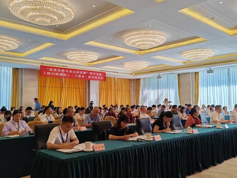 2025年7月13日上午,“成昆铁路与凉山的发展”研讨会暨《四川铁路史》(三卷本)新书发布会在凉山州西昌市顺利召开。本次会议由西南交通大学马克思主义学院与四川师范大学等单位联合主办,旨在纪念成昆铁路建成通车55周年,深入探讨以成昆铁路为代表的四川铁路建设发展辉煌历程及其彰显的“四川贡献”“四川力量”。四川师范大学党委副书记张海东教授、原铁道兵将领郭维城将军之女郭梅女士、凉山州委宣传部常务副部长骆国兴等领导出席开幕式并致辞。来自西南交通大学、四川师范大学、四川大学、电子科技大学、西南民族大学等高校师生,四川人民出版社、中国铁路成都局集团、中铁二局集团有限公司等企业代表,以及铁道兵老战士代表、凉山州本地专家学者等120余人齐聚一堂,共同回顾成昆铁路建设的光辉历程,展望凉山发展新篇章。