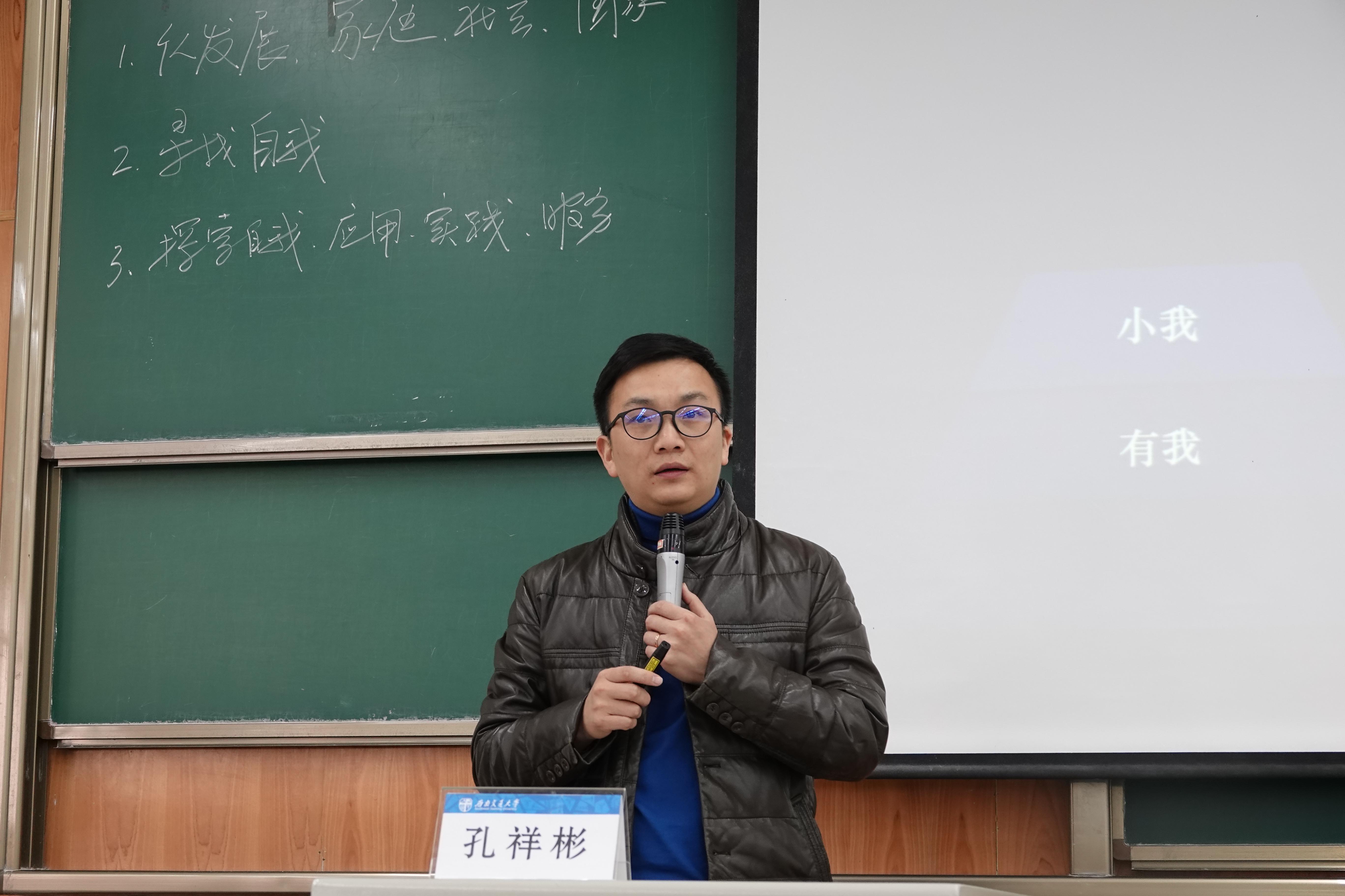 11月21日,以“不忘初心,牢记使命”为主题的第二期“青马工程”储备人才培训讲座在X4352教室举行。本次培训讲座由马克思主义学院、数学学院和心理研究与咨询中心三个学院共同举办,邀请到力学与工程学院党委副书记孔祥彬作“人生意味最忌浅薄”的专题报告。三个学院的团干部和团员代表参加,讲座由我院团委书记赵晨主持。