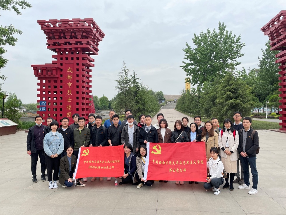 4月15日,为开展党史学习教育,进一步激励广大党员充分发挥先锋模范作用,马克思主义学院博士党支部与土木工程学院2020级博士班党支部近30名党员、预备党员、党员发展对象和入党积极分子前往位于成都市锦江区的成都市烈士陵园,参观成都烈士纪念馆,瞻仰烈士陵园,开展了以“重温入党誓词 弘扬革命精神”为主题的主题党日活动。纪念馆内,大家仔细聆听讲解员的解说,详细了解了为革命、建设和改革作出突出贡献的革命先烈的光辉事迹,认真观看了纪念馆集中展示的文物、影像图片和资料,通过不同载体、不同角度,全面了解了英勇的四川人民和成都人民的奋斗历程,深刻感受到先烈们为革命胜利展现的不怕流血牺牲的崇高精神。全体人员还来到纪念碑前,高举右拳面向党旗庄严宣誓,重温入党誓词,再次感悟入党时的那份初心。