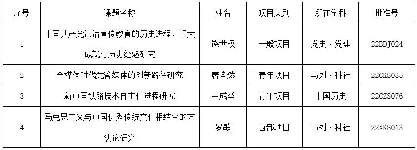 2022年9月30日,2022年国家社会科学基金项目立项结果正式公布。我院共有4项项目获得立项资助,其中一般项目1项、青年项目2项和西部项目1项。今年我院教师的国家社科基金年度项目申报/资助率为26.7%。