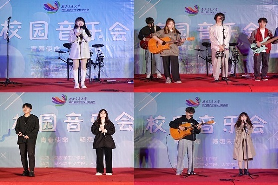 10月30日晚7:30,由党委学生工作部主办、马克思主义学院与人文学院共同承办的西南交通大学第九届文化艺术节之“青春使命,畅想未来”校园音乐会活动在犀湖旁草坪上如期举行。党委学生工作部黄原、张庆伟,马克思主义学院李浩等老师和同学们参加此次活动。