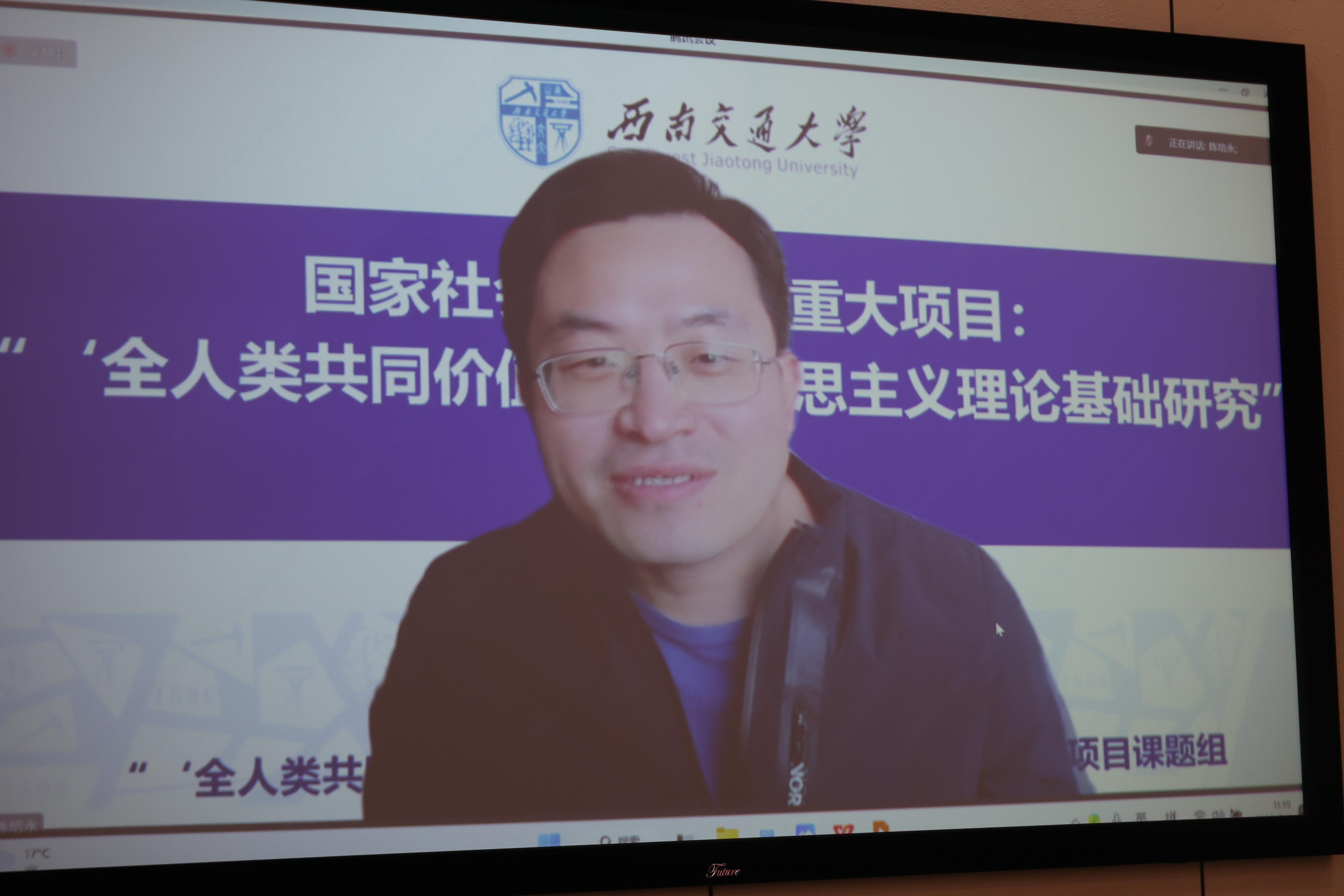 3月4日,国家社科基金重大项目“‘全人类共同价值’的马克思主义理论基础研究”开题暨学习党的二十大精神学术论坛在西南交通大学九里校区学术交流中心顺利举办,开幕式由西南交通大学文科学部执行主任张雪永主持,西南交通大学副校长康国政同志、四川省社科联副主席罗仲平同志出席开幕式并发表讲话,西南交通大学马克思主义学院院长邱海平、党委书记廖军、执行院长田永秀、班子成员及师生代表出席会议。