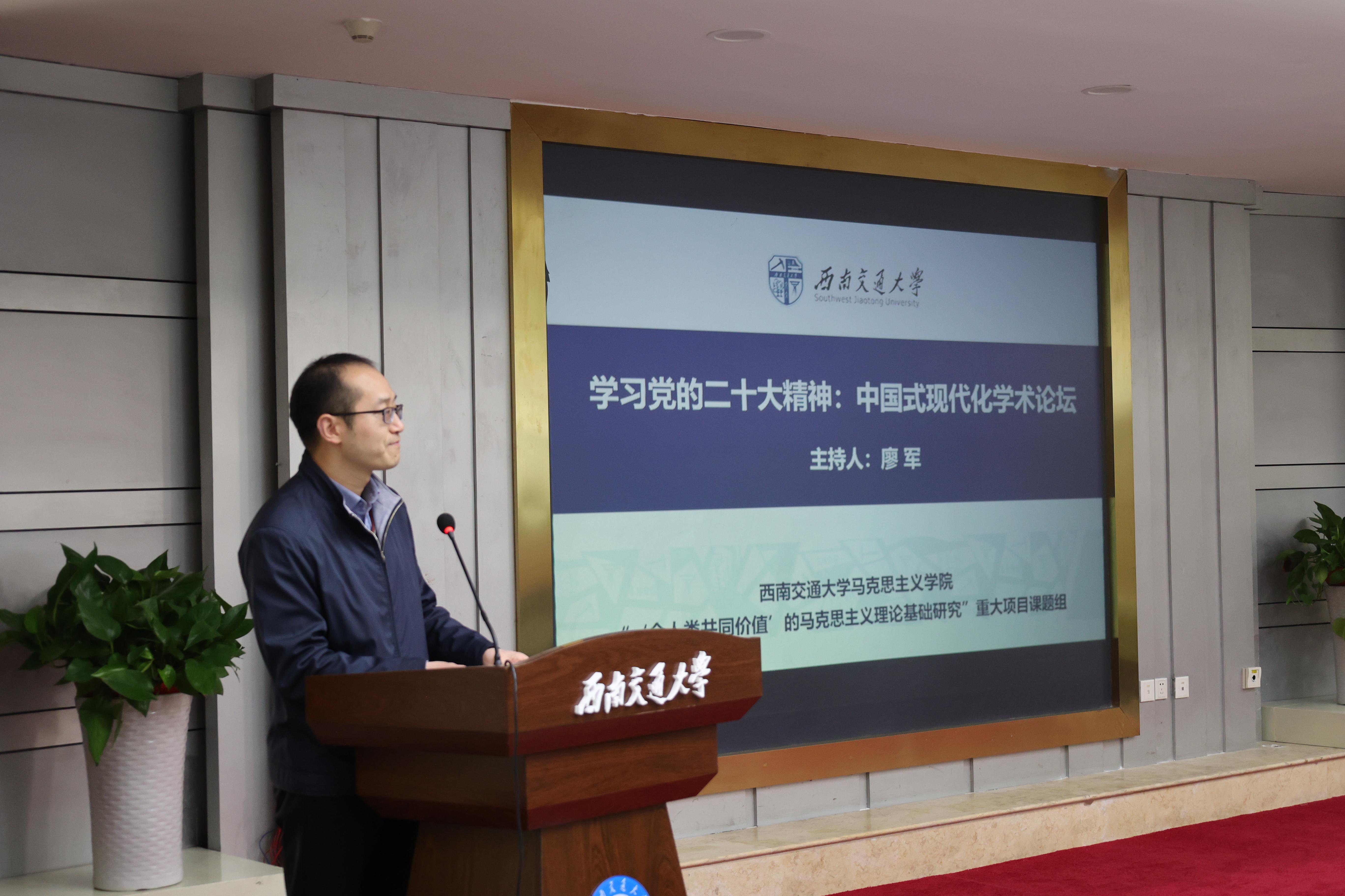 下午,西南交通大学马克思主义学院召开学习党的二十大精神学术论坛。会前,各位专家参观了轨道交通国家重点实验室和高温超导磁浮样车。在学术论坛上,与会专家围绕“中国式现代化”这一主题分别做了学术报告,马克思主义学院全体师生代表参加,廖军主持会议。