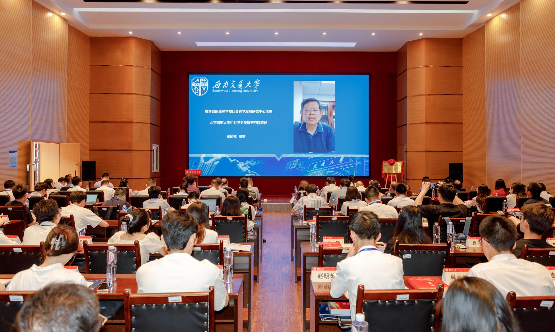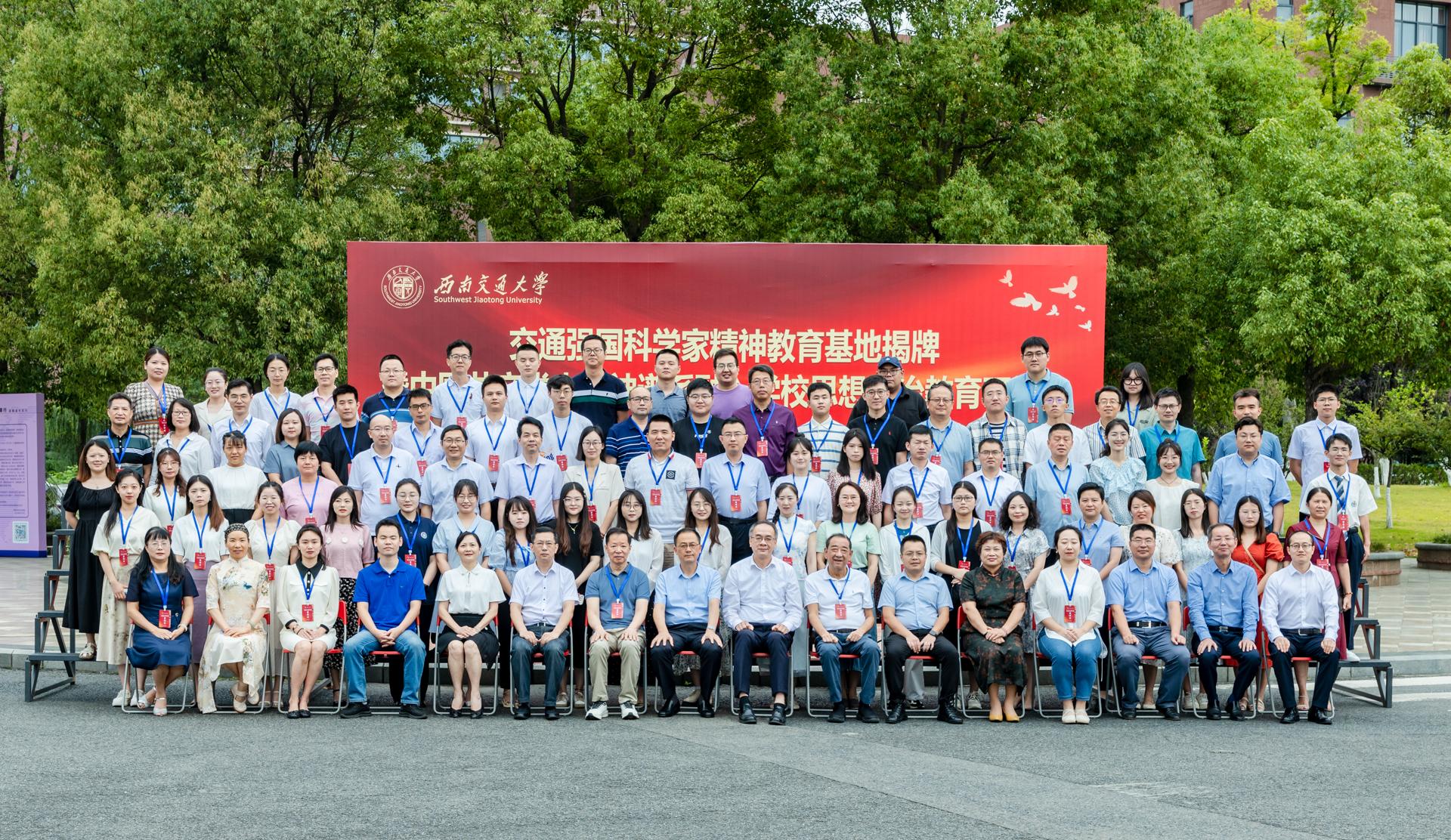 为热烈庆祝中国共产党成立102周年,在全党全国上下深入开展学习贯彻习近平新时代中国特色社会主义思想主题教育之际,2023年6月30日,由西南交通大学马克思主义学院主办,《思想理论教育导刊》《马克思主义理论学科研究》《教学与研究》和5.12汶川特大地震纪念馆协办的“交通强国科学家精神教育基地揭牌暨中国共产党人精神谱系融入学校思想政治教育研讨会”在成都隆重举行。西南交通大学党委书记余敏明、四川省教育厅二级巡视员杨建国、四川省科技厅科技监督与诚信建设处处长梁刚、四川省科学技术协会调研宣传部调研员李梅和有关负责同志出席大会开幕式,来自全国各地党史党建和思想政治教育领域的专家学者、期刊编辑和相关媒体人员等100余人参加学术会议。