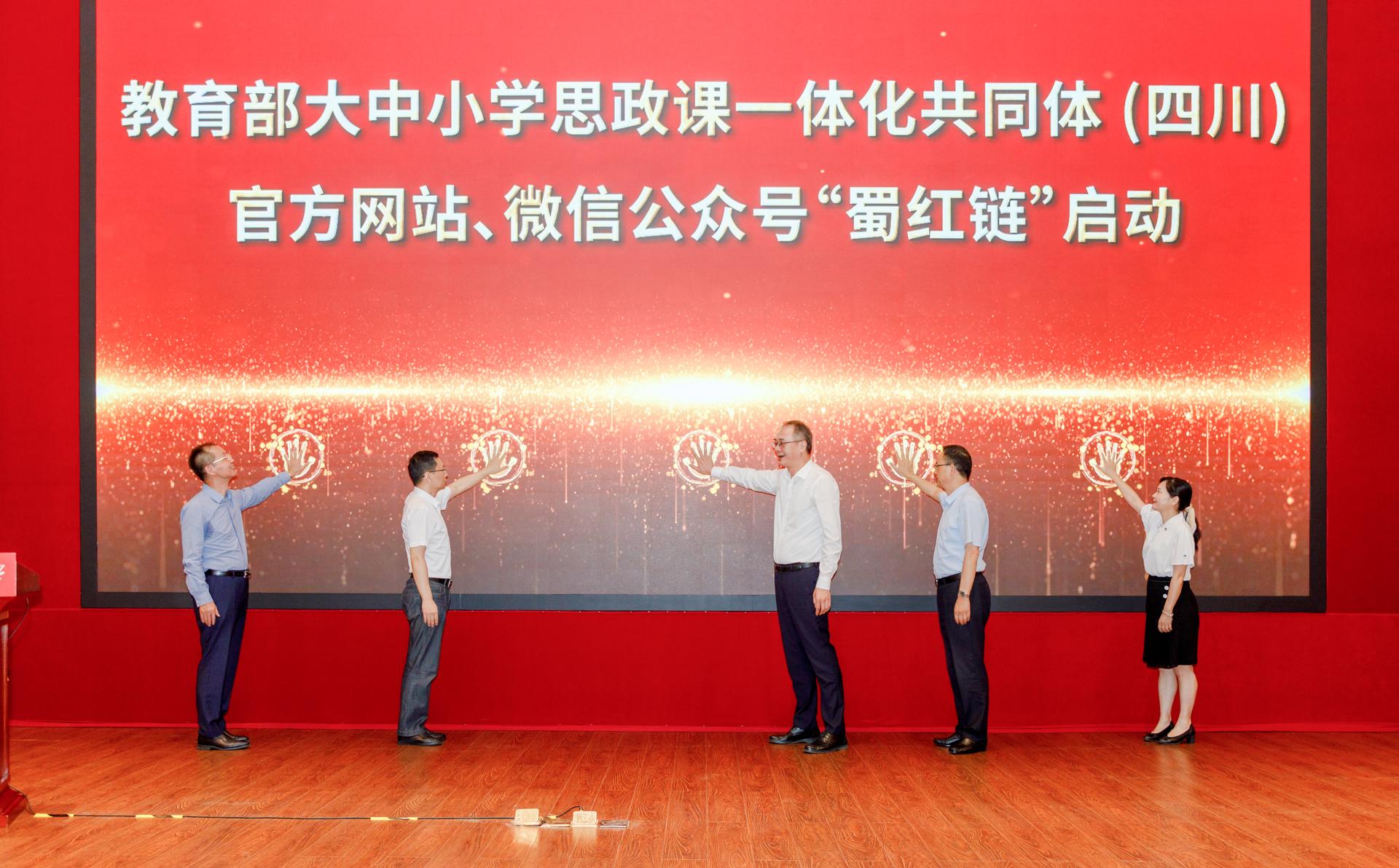 会议举行了西南交通大学交通强国科学家精神教育基地揭牌仪式。2023年5月,由西南交通大学马克思主义学院牵头申建的“交通强国科学家精神教育基地”成功获得中国科协、教育部、科技部、国务院国资委、中国科学院、中国工程院、国家国防科工局等七部委联合认定,作为西南交通大学马克思主义理论学科建设的重要成果,是学校高质量开展思政工作、深刻践行“为党育人、为国育才”的又一个重要载体。李梅代表四川省科协宣读了科学家精神教育基地认定文件。在热烈掌声中,余敏明、杨建国、梁刚、李梅共同为基地揭牌。之后,举行了教育部大中小学思政课一体化共同体(四川)官方网站、微信公众号“蜀红链”启动