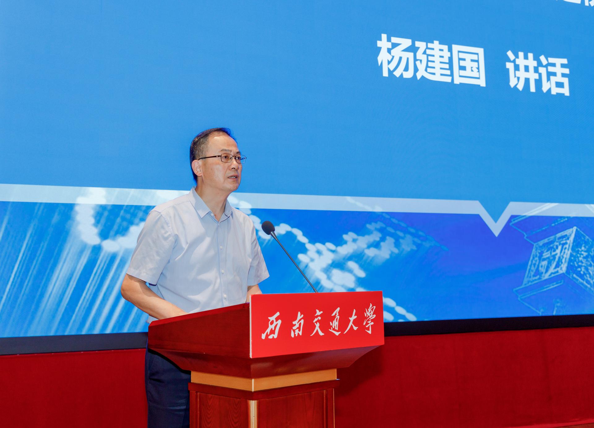 开幕式上,杨建国最后发表了讲话。他代表四川省教育厅向大会的召开表示祝贺,充分肯定了西南交通大学近年来在研究阐释中国共产党人精神谱系,并将其融入思想政治教育工作方面做出的突出贡献,指出要进一步提高政治站位,强化使命担当,要充分发挥好西南交通大学作为教育部大中小学思政课一体化建设共同体(四川)牵头单位的作用,立足四川省情,推动一体化融入,建设中国共产党人精神谱系育人的高地,打造四川样板,形成四川经验,彰显四川特色。